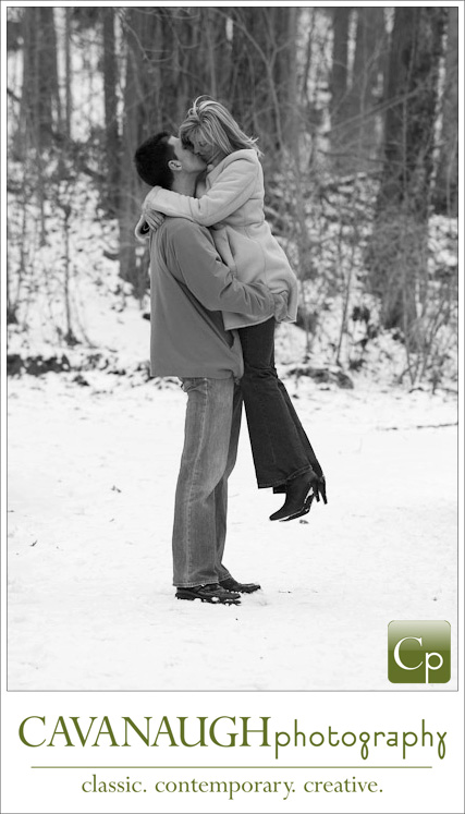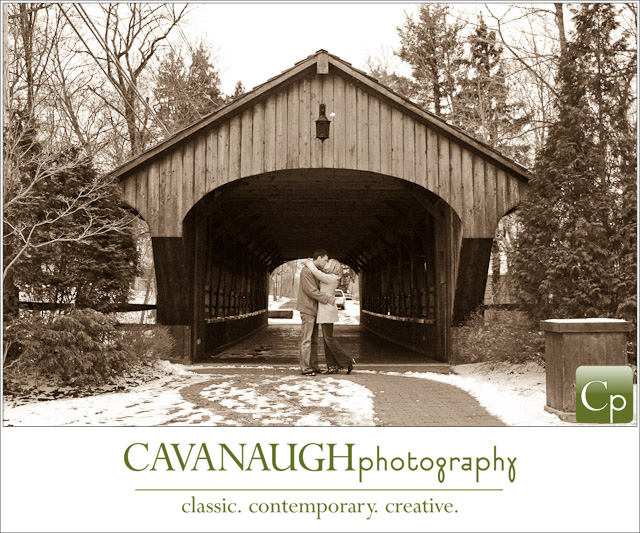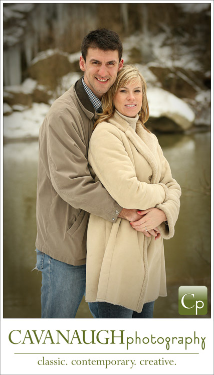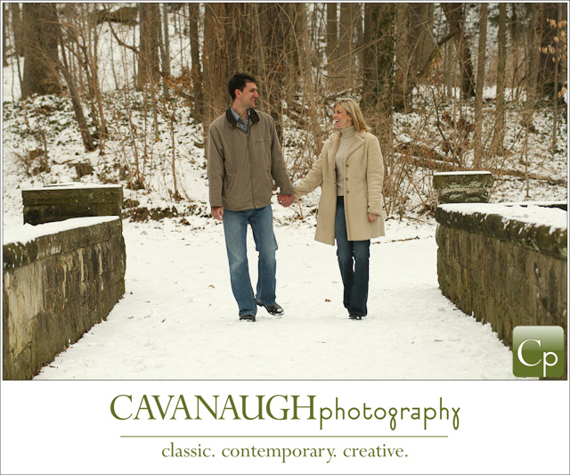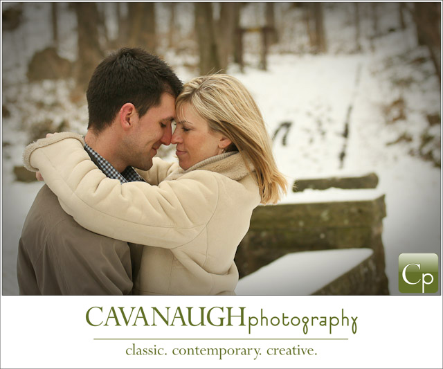 I don’t photograph a lot of outdoor sessions in the winter but I happened to have three engagement sessions a couple of Saturdays ago, (purely by coincidence – really!). There was just enough fresh snow on the ground to cover the dead of winter that can make photographing outdoors this time of year such a challenge. Being that I had three sessions in one day I couldn’t travel to various locations which brought about another challenge; to photograph three couples in the same area (in and around the Olmsted Falls David Fortier River Park) and make each session unique.