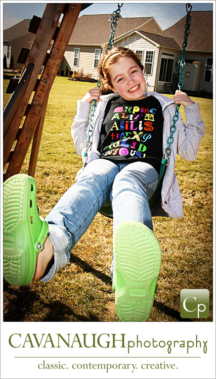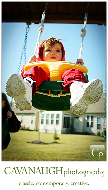 This past weekend the kids spent some time on the swings, (all except for Alex who was a little under the weather). They all had a great time and Ian got his “inaugural” ride. It’s amazing what a little sun and warmer weather can do for your mood.