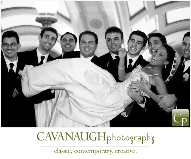I started at Lucia’s parent’s home where Lucia and the bridesmaids were getting ready. Renee met up with Matthew and the guys. After some photos we headed to Our Lady of Mt. Carmel for the ceremony. Once we finished formals at the church we had a few stops before the reception at the Courthouse. First was lunch at Massimo Da Milano’s, then to Lucia’s parents’ home and finally to Matthew’s parents’ home. We got to the Courthouse early enough to take some photos before the guests started arriving. While we were photographing details at the reception we wanted to be sure to get some pics of the fantastic cakes and dessert table from Michaelangelo’s bakery, which Matthew’s family owns, by the way. In fact Matthew and his brother made their wedding cakes and as you can see from the photos below they were awesome! A Taste of Excellence catered the event and did a fantastic job. After dinner a live band played and the dance floor was packed all night long. What a blast!
