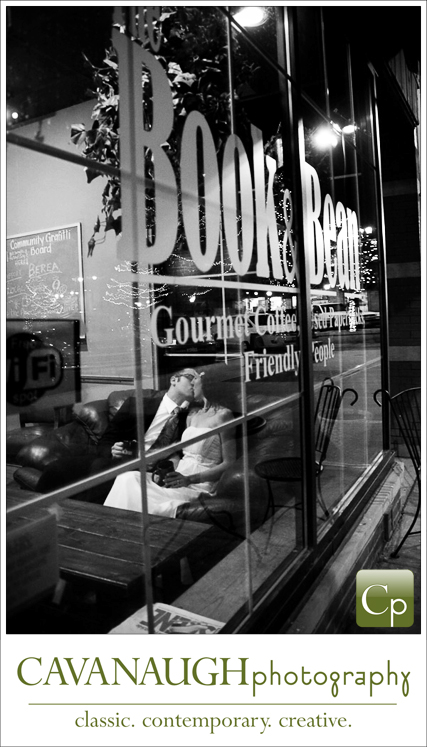 This pic is another one of my personal favorites. Heidi and Jake are very good friends, so I was honored to photograph their wedding and after session. We took this photo at The Book and Bean in Berea, where they had their first date.